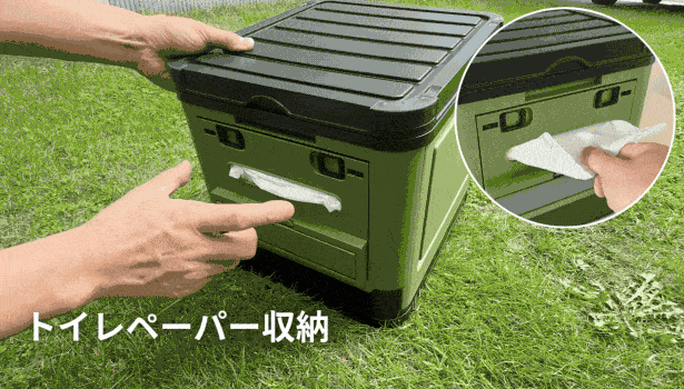 一般的な簡易トイレは、トイレットペーパー、凝固剤、処理袋を別々に準備する必要があり、急な使用時に慌てることも…。 でもUNISTOOLなら、本体内部にこれらの備品をスマートに収納できるため必要なときにサッと使えます。